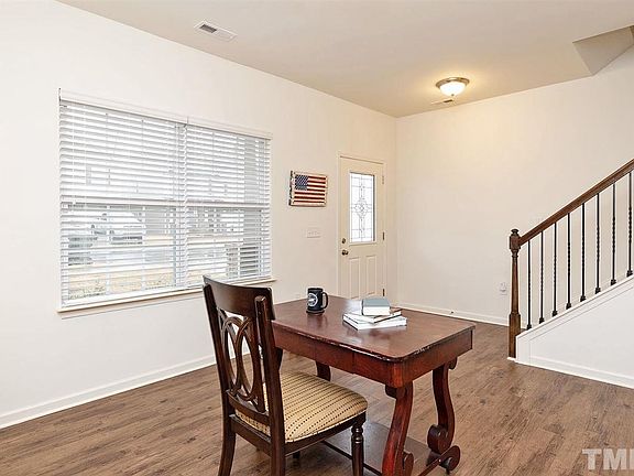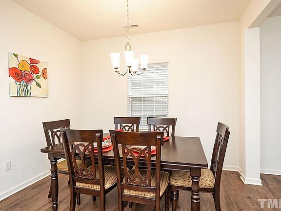 Built 2017, spacious home is still shiny & new! Low maintenance & durable LVT flring on main flr, w 10' ceilings. Formal Living Rm/Office space & Dining Rm. Family Rm has cozy gas log fireplace & is open to Kitchen. Fabulous Kitchen has granite ctops, center island, ss appliances, pantry & Breakfast Nook. Generous Mstr Suite w soaking tub, dual vanity & walk-in shower. 3 additional Bdrms on 2nd flr, one w private Bath, one easily used as a Bonus Rm. Minutes from DT Raleigh & White Oak shopping center!