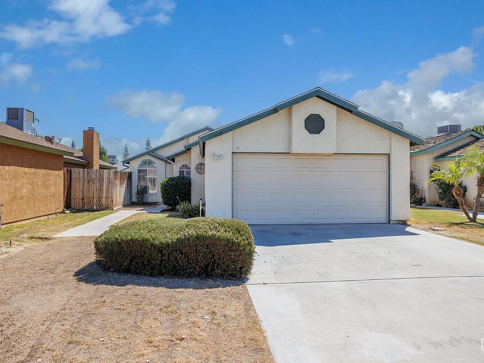 Step into this inviting split-wing home and discover a world of comfort and style! The interior boasts newer carpeting throughout. Upon entering, you'll be greeted by a dining room thoughtfully positioned adjacent to the kitchen. The kitchen features bar top seating, white appliances, and white tile countertops. The centerpiece of the home, the great room, features a charming brick fireplace that not only adds character but also brings a cozy warmth to the living area. The primary bedroom with an ensuite bathroom features white tile countertops and a walk-in shower. Two additional bedrooms, a bathroom, and an indoor utility room round out the layout of this home. The backyard is a canvas of endless possibilities, offering the potential to be transformed into a welcoming retreat. Call today to schedule an appointment and explore the remarkable potential that awaits you!