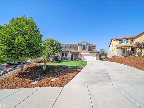 Incredible Farm-House Inspired 5-bedroom two story pool home with a view of the Santa Rosa Plateau and PAID SOLAR, in the charming city of Wildomar! This property has exceptional curb appeal with a long driveway for a large family or entertaining. As you enter, you’re greeted with a wide hallway, vaulted ceilings, ample natural light and a grand staircase leading to the second floor. The open-concept living area is open to the gourmet kitchen with sleek, stainless steel modern Z-Line appliances, pot filler, six-burner stove, double oven, granite countertops, large island with plenty of room for seating, and custom backsplash. Spacious dining room is also open and just off the custom kitchen. The first floor also includes a bedroom with a full bathroom at the front of the home, perfect for guests or those who prefer to avoid stairs and provides privacy. Upstairs, an expansive loft provides additional space for relaxation, studying or entertainment. The master bedroom has a stunning mountainous view, a luxurious en-suite bathroom, and large walk-in closet with natural lighting. In addition to the loft and master bedroom, there are 3 generously sized bedrooms as well as the laundry room for added convenience. Next, step outside to the backyard and discover a true outdoor oasis. Low maintenance landscaping allows for more time to enjoy the sparkling pool and jacuzzi, perfect for unwinding, and cooling off on hot days, enjoying the sunset or relaxing under the stars at night. Additionally, the pizza oven, built-in BBQ, and fire pit make outdoor dining and entertaining a breeze. FULLY PAID solar ensures low energy bills. Located close to shopping, entertainment, restaurants, and schools, with easy access to the 15 freeway, this home is a perfect blend of luxury and convenience.