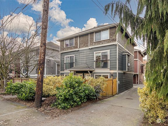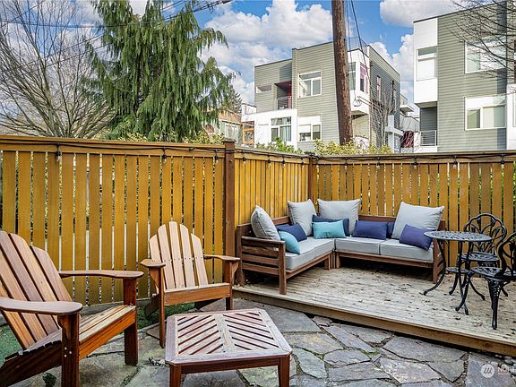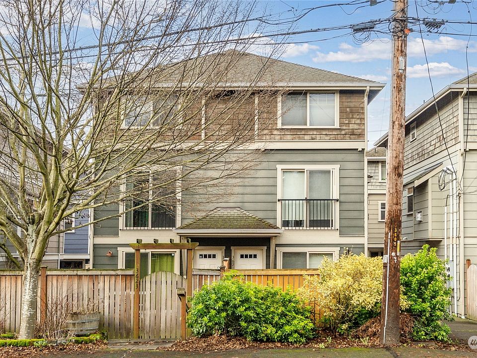 Charming craftsman townhome on a quiet tree-lined street in the heart of Mount Baker. The entertainment level of this home is an open concept floor plan featuring hardwood floors, kitchen w/ butcher block counters, stainless steel appliances, eating bar, powder room, and gas fireplace. This end unit is filled with morning light through the sliding glass doors overlooking the fully fenced yard. Upstairs you’ll find the laundry closet, vaulted ceilings, and 2 bedrooms with loft storage. The primary bedroom has a full ensuite bathroom featuring tile surround and soaking tub. The lower level includes a generously sized den and one car garage w/ storage. Conveniently located less than a mile from Link Light Rail transit and Lake Washington.