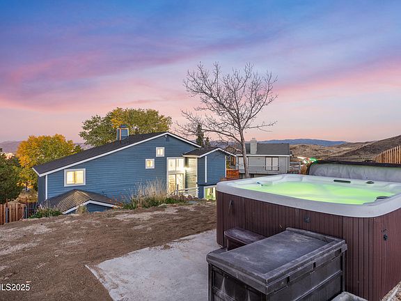 Your opportunity to own a home on an acre in one of the most highly desired neighborhoods of Old Southwest Reno has arrived! As you drive up to this gorgeous Caughlin Ranch home located in a quiet culdesac, you will be pleasantly surprised to see an oversized three car garage which features an RV garage in the third space. Upon entry, you will find teak hardwood floors, two bedrooms, a full bathroom, and the laundry area. As you walk up the stairs you will see the beautiful living space with views of the city from both the slider and large dining room windows, as well as the primary bedroom and attached flex space. With multiple decks along the front, side, and back of the home, there is no shortage of VIEWS. This home has been thoughtfully updated with stunning teak hardwood flooring installed in 2020, new roof (2020), siding painted in 2020, paid off solar installed in 2023, New AC and Furnaced installed in 2024, Tankless water heater installed in 2024, new fence in 2020, kitchen remodel in 2025, front and backyard irrigation, and a perfectly private split level backyard space with NO rear neighbors and walking steps to the hot tub pad -- where you get the most stunning views from during your soak sesh. Do not miss your opportunity to call this one of a kind house a HOME.
