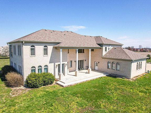 Elegant home setting majestically on 10 acres & higher up on the land so you have a view reaching miles from the second floor, every bedroom has a full bath and is spacious, walk in closets, kitchen has lots of cabinets and a large pantry for storage, island with sink, kitchen appliances included, huge rec. rm. with 10 ft. ceiling, Brunswick pool table included, sitting area with bay window great area if you are a reader, formal dining, first floor bedroom with a full bath, balcony style walkway connecting 2nd floor bedrooms, 2 story living room and entry with a beautiful winding stairwell, recessed lights thru out, extra large master bedroom en suite, beautiful original wood stained oak trim and solid core doors thru out, i/2 bath in the 3 car garage with service door, full brick exterior, long, tree lined drive way. this would also make a great bed and breakfast or RBNB. since each bedroom has it's own full bath.