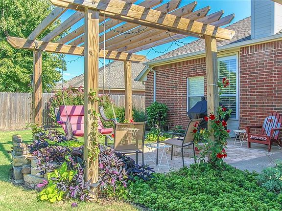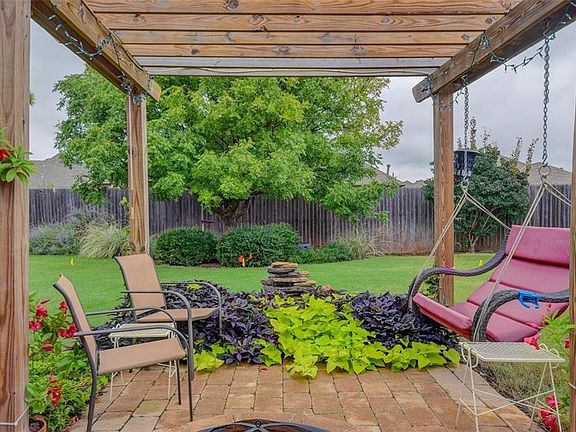 Cute, cute, cute north west Norman property! The Sellers have made many updates to the property including quartz countertops in the kitchen and appliances. Newer tile in the bathrooms, newer roof and some gutters. Has a flexible split bedroom floor plan that could either have a formal dining or nice sized office. Beautifully landscaped back yard with a sprinkler system. Covered patio and an additional pergola area with a fire pit, darling porch swing complete with a water feature for peaceful outdoor enjoyment. Property backs up to the greenbelt for additional privacy.