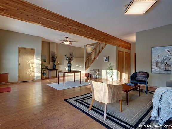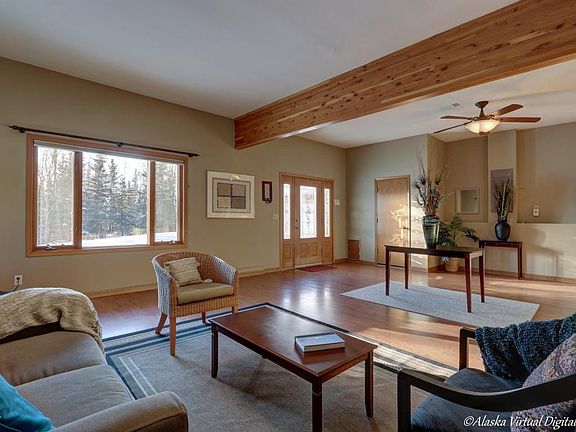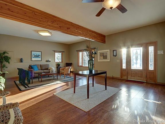 Beautiful Alaskan woodsy setting & privacy. 3 Bedrooms, 2.5 bath, 3+ garage is every Alaskan man's dream garage!! Great space for parking toys. Vaulted Ceilings, Great Rm concept living/kitchen dining, Game Rm/Family Rm for play space. New Carpet. Garage has back door to pass thru vehicles. Garage is 1200 sq' approx with 560' loft Take Rabbit Cr to So on Loc Loman Right on Dora