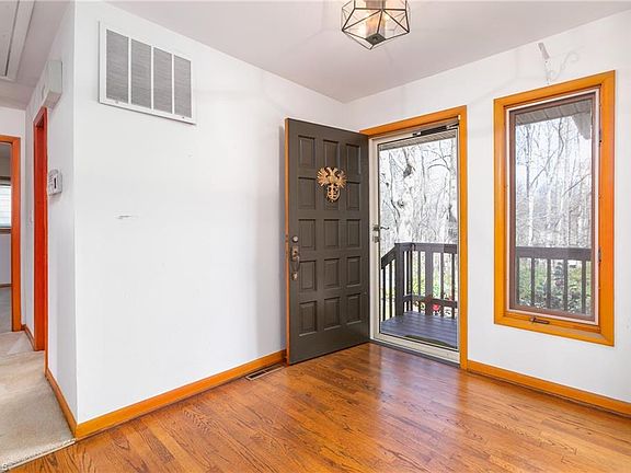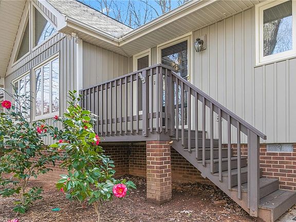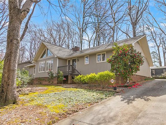 Welcome to this stunning single story home boasting a spacious layout. As you step inside, you'll be greeted by tall ceilings that enhance the sense of openness throughout the house. A large brick fireplace with gas logs serves as the focal point of the living area, exuding warmth and charm along with natural hardwoods. Natural light floods the interior through expansive windows, illuminating the living spaces and creating a seamless connection with the outdoors. The kitchen is a delight, featuring sleek countertops and ample storage space, making meal preparation a breeze. Primary bedroom has a connected bathroom with walk in shower. Outside, you are greeted with a very private wild-life oasis, trex deck, attached storage room, and shed for additional storage options. Water softener system is also included with a 5 year service. Some photos have been virtually staged.