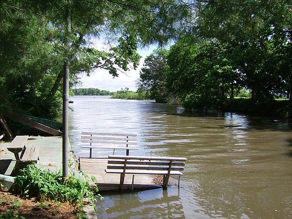 Private setting! Located on a private drive w/private boat ramp. Waterfront property w/golf course view. Large kitchen, dining room, family room w/fireplace & living room w/fireplace. Bonus room can be 3rd bedroom. 2 full baths. Main floor laundry, excellent square footage value. Newer roof, windows, hardwood floors, electric service. All appliances stay. Cement seawall w/dock included.