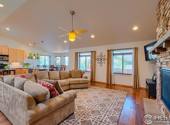 Beautiful large ranch walking distance to schools & parks. Open & flowing w/wood flrs, dbl sided stone fp, corian cntrs,solar tubes & SS appls! Amazing open kit w/ breakfast bar, cabss galore & sep eat-in din w/patio access. Huge master bdrm w/fp & sitting area w/patio access + master ba w/river rock walkin shower, dbl sink & walkin closet. Part fin bsmnt w/2 big bdrms, full ba & large rec room plumbed w/bar roughin + storage. Corner lot w/mature trees,fully fenced,3 car tandem garage w/urinal!