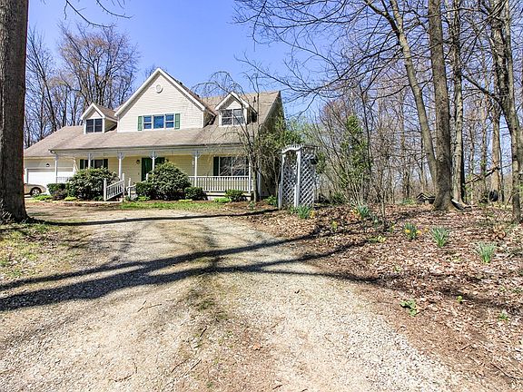 Large Lexington home on 4.91 secluded acres. Tucked away off the beaten path yet only 40 minutes to Polaris! 5 BRs, 3 full baths. Two story living room makes a great first impression. Hardwood floors. Unique floor plan offers two master suite options (one up, one down) and loads of entertaining space! Large eat-in, oak kitchen. Huge family room with dining area, all trimmed out in knotty pine. Walls of windows capture the gorgeous wooded views. The wood burning stove caps off the rustic vibe. The finished lower level includes a master suite which would also make a great in-law suite. Full master suite on second floor as well. Geothermal (2013) heating and cooling. Spectrum cable.