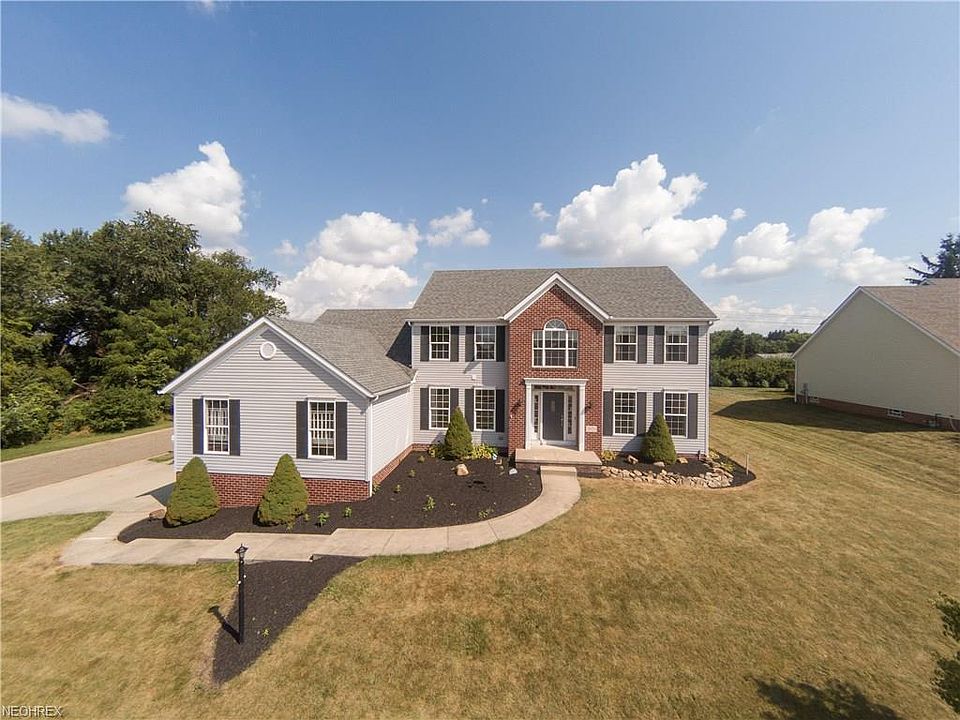 Call or Text listing agent Darcy Friel at 330.324.2264 for a private showing. Tucked deep in Shepherd's Gate, with its streetlights, sidewalks, and matching mailboxes, you will find this spacious center-hall colonial. There are over 4000 finished square feet with four bedrooms, 2 1/2 baths, and a three car sideload garage. Huge 13 x 12 foyer with hardwood floor's, crown molding, and a doorway to the impressive formal living room with walls of built-ins. Awesome kitchen for entertaining with hardwood floors, a center island breakfast bar, desk workstation, and a tile backsplash. The kitchen opens to the sunroom and deck as well as the vaulted great room with a gas fireplace. There is a first floor laundry and private den as well. Upstairs has three spacious bedrooms with double closets. The master bedroom us at the end of the hall has a massive walk in closet, and a private master bath with double sinks, jetted tub and a walk in shower. The basement of this home is unbelievable! Ohio State fans take notice! Huge finished area with canned lights, glass block windows, built-in shelving, and a sneaky entrance in and out from the garage from a potential 5th bedroom.....Oh and the garage! Three car sideload with a play area above the parking area. The homeowner used it as an indoor practice area for baseball! This home has so many fine extras: built in audio, trayed ceilings, fresh paint, Vacuflo, and a brand new air conditioner! This home offers so much for the money!