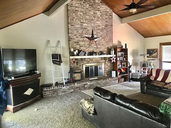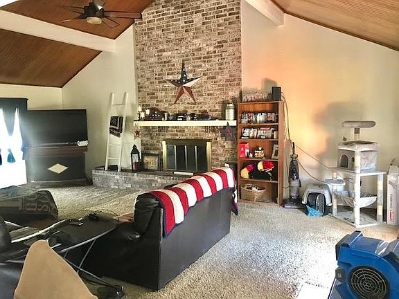 Replacement windows except for the front window, vinyl siding and soffits, sprinkler system front and backyard and in the flower beds, covered patio and extra parking. Beautiful fireplace in the living room. New garage door. Seller will give Buyers a flooring allowance with acceptable offer.