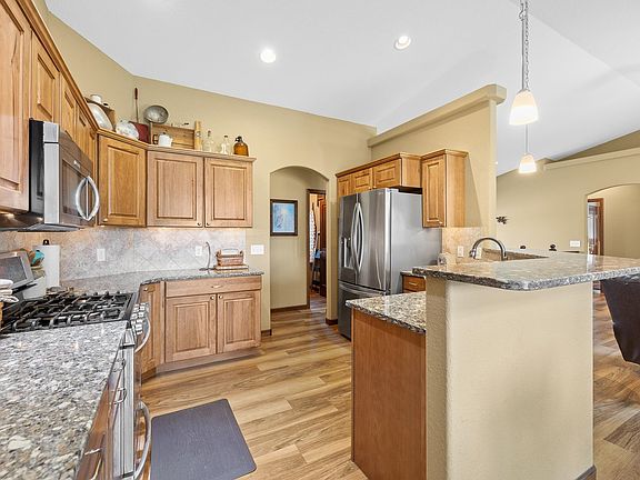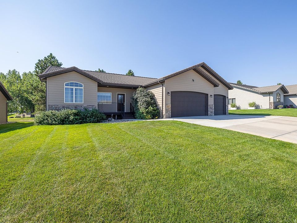 Listed by Elissa Erickson, KWBH, 605-877-4060. Enjoy easy single level living in this beautifully maintained ranch style home with a fully finished basement, backing to the the 13th tee box of Rapid City Elks Golf Course! *Cross the covered front porch and into this spacious home with open living spaces, vaulted ceilings, LVP flooring and bright/airy spaces *The living room and kitchen serve as the heart of this home- prepare meals with ease in the well appointed kitchen, complete with stainless steel appliances, beautiful granite countertops and upgraded cabinetry with soft close features *Nearby dining area with slider door access to the covered back deck *Main floor master bedroom is a private escape, with a spacious bedroom, ensuite bathroom and large walk in closet *Main floor laundry room, 2 added bedrooms and 1 full bathroom on this level *Fully finished basement has a large family room with egress windows, 3 bedrooms, 2 bathrooms and a large multi-use room (think storage, in home office or private gym- bring your ideas!) *Attached oversized 3- car garage provides space for your vehicles and your golf cart *Relax on the covered back Trex deck, with dedicated gas line, or on the paver patio- both overlooking the golf course *Great curb appeal with maintenance free siding with stacked stone accents, a concrete tile roof and tasteful landscaping throughout. *A beautiful home in a peaceful golf course community- this home is a rare gem. Call today for a private tour!