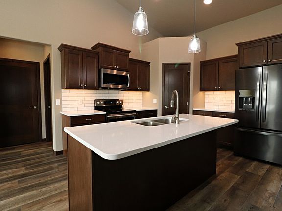 OPEN HOUSE 10am to 12 on Saturday 3/11. Very well maintained home in Southeast Rapid City! With 1618 square feet all on one level, this zero entry home contains 3 bedrooms, 2 bathrooms and a 3 car garage. Interior choices are well appointed and include a custom floor to ceiling bookshelf and a stone fireplace. The kitchen features vaulted ceilings, quartz countertops, pantry, soft close cabinets, additional lighting and built in organizers. There is easy access to the backyard with large covered patio off the dining room. Many upgrades throughout the home inside and out! The main bedroom features an en-suite with double vanity, oversized walk-in shower & walk-in closet. All of the amenities one would expect such as central air and gas forced air heat along with association benefits such as snow removal and lawn care make this the perfect choice.