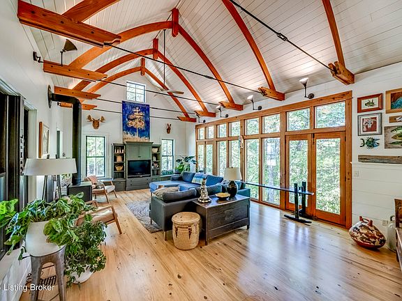 Award Winning Architecture in this reimagined cottage that has been turned into a modern sanctuary that honors the nature surrounding it. The owners designed and custom built this amazing home for their family 20 years ago, it is truly one of a kind! Three or 4 bedroom, 3 ½ baths, amazing kitchen with leather colored concrete tops, cypress flooring on main level, finished basement with tons of storage/workshop space and upstairs bedrooms and bath. The entrance is a custom shaped silo and leads to an office/library where climbing iron rungs is the only entrance. This is an amazing and fun home on 11 wooded acres of privacy!