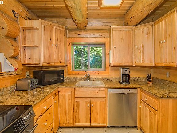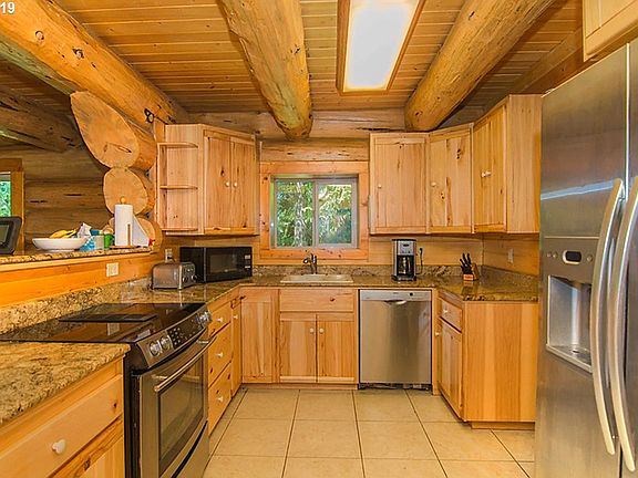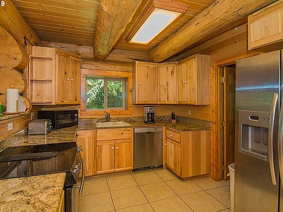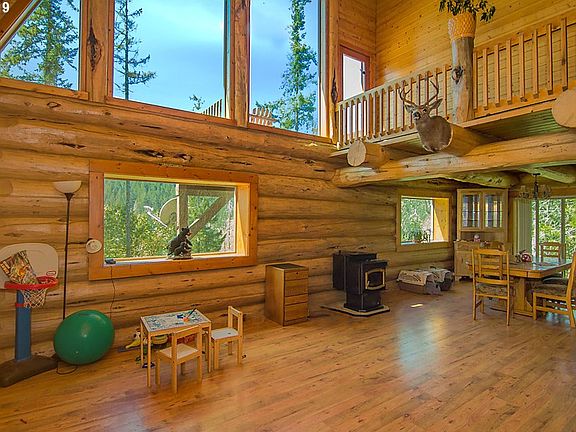 This craftsman log home has been painstakingly created in the old world ways. Full Scandinavian Cope Chinkless fit. Stunning views of the surrounding mountains and timberlands. Interior is timber framed with beautiful granite kitchen, and Hickory cabinets. Jenn Air, Bosch appliances. Living room and Master on main level, family room, beds upstairs with jet tub in upstairs bathroom. Oh the views! Nice 36x32 shop, 3 bays w/loft. Orchard!