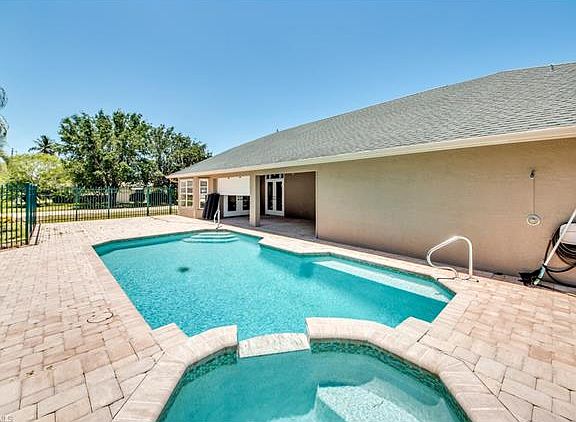 Move in Ready 3 Bedroom, 2 Bath, 2 Car Garage Pool/Spa Home in the Heart of SE Cape Coral and ready for new owners! This home has everything you would be looking for - Upgraded Kitchen with 42" Cabinets, Granite Countertops, Stainless Steel Appliances, Both Bathrooms have upgraded Tile, Granite Countertops and under mount sinks, and there are upgraded tile floors throughout the living areas and brand new carpet in the bedrooms. The home has a Great Room layout with split bedrooms, Huge Laundry Room, Nice Undertruss Lanai with 4 sets of French Doors leading out to the porch and Vaulted Ceilings. It also sits on an oversized corner lot and assessments are in and paid. The exterior provides newer landscaping with concrete curbing, a pool and spa and huge paver lanai. A couple features to notice when viewing, the master bedroom closet is huge and the garage has a separate storage room with hidden door, perfect for a gun collector. Call today for a private showing.