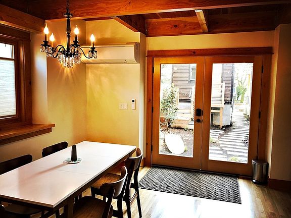 Morrison street eco house is a recently constructed, fully detached private guest house in a quiet, landscaped setting in a close-in to downtown neighborhood. Two bedrooms & master bath upstairs. Half bath downstairs. High end kitchen. One block to Belmont restaurants and shops and short walk to Laurelhurst Park & Hawthorne retail district. Ideal for singles/couples, business travelers, or small groups of up to four people in two bedrooms. Suitable for families with non-crawling infants and/or children aged 3+. ABOUT THE SPACE The eco house is a separate 800-squre foot home accessed through a courtyard alongside the main house. Light and airy and featuring reclaimed wood, the house is constructed for environmental sustainability and energy efficiency with exceptional indoor air quality. The house features oak floors throughout, low VOC finishes, wood windows, salvage fir trim and cabinets throughout. The house has two bedrooms and master bath upstairs and a half bath downstairs. The house has a high efficiency heating/cooling system for year-round comfort. The space has a full kitchen, with new stainless appliances and granite countertops. Tea and coffee beans are provided. Additional groceries can be purchased nearby at the neighborhood grocers: New Seasons Market and Hawthorne Fred Meyer. The living space has french doors that open out to the courtyard. A large dining table also provides a comfortable laptop work space to use with the dedicated guest wifi network. Summer guests can enjoy the cool of air conditioning unit. The bedrooms feature white oak floors, queen beds with brand new natural latex mattresses for comfort, health, and environmental sustainability. Super soft 100% cotton sheets are provided for your comfort. To maintain guest privacy and comfort, there shades on all windows. The master bathroom is adjacent to the bedrooms and has a full size tiled shower and large sink with ceramic countertop. The house also includes front load washer and dryer. There also is a half bath downstairs adjacent to the living room area. Lease Open for long and short term rentals