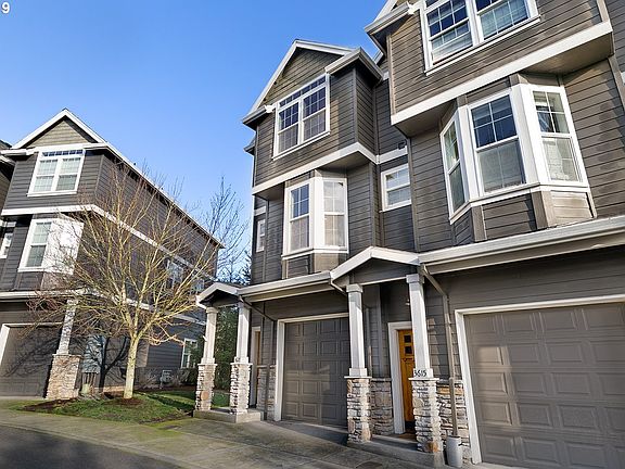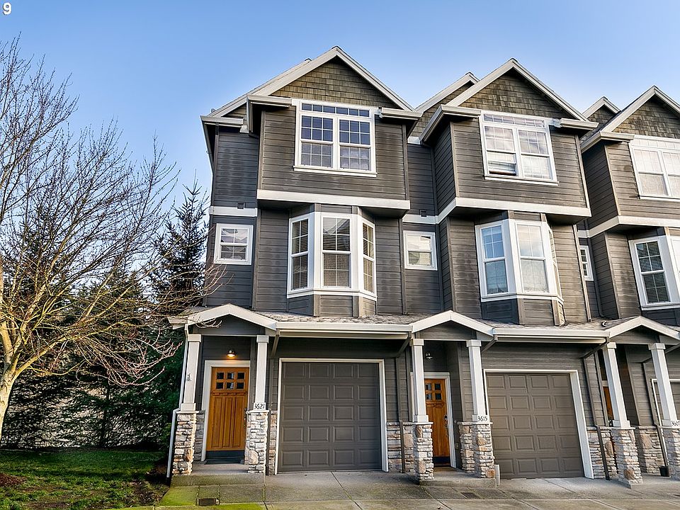 Gorgeous end unit townhouse boasts tons of natural light. Main floor offers open living space w/hardwood floors, gas fireplace & views of the lush park. Kitchen includes SS appliances, granite countertops and eat at bar. Top floor has 2 master suites, both with full bathrooms and walk in closets. Bonus room on ground floor with patio. Backs to Tualatin Valley Hills Nature park, walking/bike trails. Minutes from Nike, shopping, freeways.