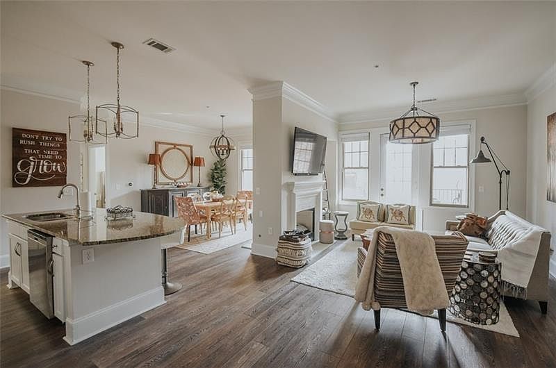 Gorgeous renovation in the Heart of Vinings! This home features designer lighting with new paint and flooring throughout. The updated kitchen offers white cabinetry with a huge island and new appliances. Enjoy the spacious master suite opening to a luxurious master bath with frameless shower, quartz countertop, updated cabinetry and custom tile. This floor plan offers two master suites with large bathrooms and walk in closets. Relax by the double sided gas fireplace. This open floor plan has an abundance of windows and natural light with glass doors opening onto the largest covered patio in Vinings Main. Vinings Jubilee is just a block away offering coffee, restaurants, shopping, weekly farmer's market and more. Live inside the perimeter with low Cobb County taxes. Enjoy Vinings Main deluxe amenities including pool, fitness center, club room, guest suite, conference room and courtyard with fireplace. Two deeded parking spaces in covered gated garage are just steps from front door.