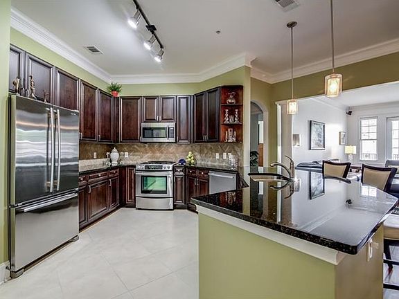Largest floor plan with wrap around balcony overlooking pool, new 5" plank hardwood floors, spacious kitchen with rich wood cabinetry, gas cooking, pantry overlooks oversized living room and den or formal dining, master w. double walk-ins, access to balcony from all bedrooms and living columns in LR and DR, master bath w/garden tub, sep shower, lots of storage, walk-in laundry room, parking just steps from unit!