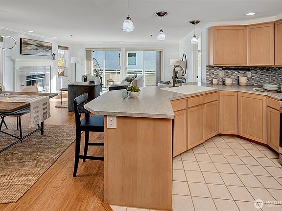 PRICE reduced on this spacious corner unit in a small, boutique, with a well-run HOA offers magical city + Space Needle views from the primary suite, living and dining rooms! Located just blocks from Gas Works Park + Burke-Gilman Trail, this home features a cozy gas fireplace, OPEN great room floorplan....filled with natural light. Enjoy an abundant + private deck, two secured garage spaces, storage, elevator + secure entry. Close to Google, Amazon, Greenlake, fun shopping, dining, downtown Seattle, Lake Union, and UW. Model perfect! Move in ready to love!