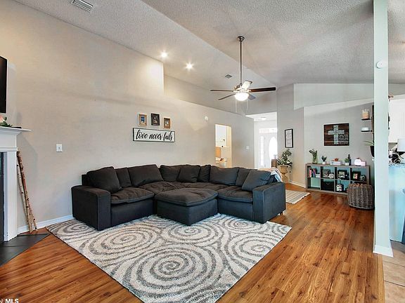 Excellent home location on a cul de sac. This brick home offers spacious living room area with electric fireplace. Kitchen has stainless steel appliances. There is a large master bedroom and master bathroom with dual sinks, garden tub and separate shower. Laminate and tile flooring throughout except 2nd and 3rd bedrooms, which have new carpet. Fenced backyard offers covered porch and above ground pool. HVAC installed 2018. Easy access to the beaches, Hwy 59, and Foley Beach Express. Gulf Shores City School District!
