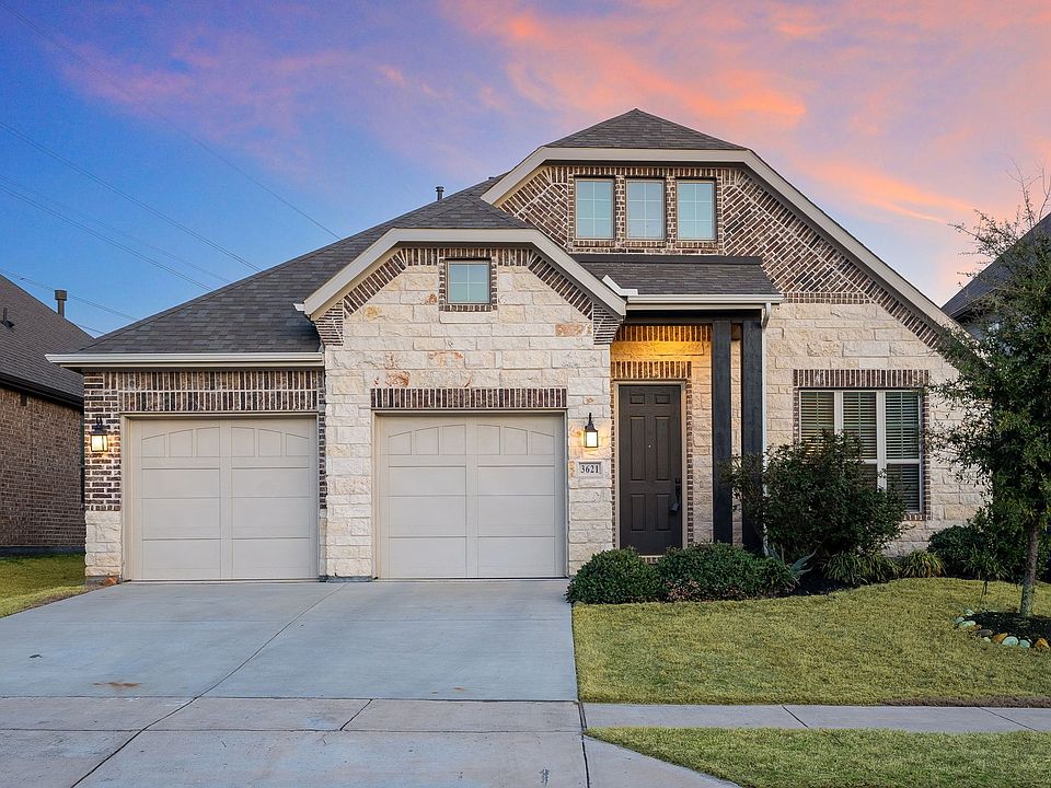 Stunning 3-Bedroom Home with Office in Amenity-Rich Canyon Falls – Argyle ISD. Discover this gorgeous one-story home in the highly sought-after Canyon Falls community in Northlake, within the top-rated Argyle ISD. Featuring 3 bedrooms, a dedicated office with French doors, and 9' ceilings, this home offers both style and functionality. The gourmet kitchen boasts a spacious eat-in island, Maestro quartz countertops, a gas cooktop, Moen faucets, and a storage pantry, making it a chef’s dream. The open living area is perfect for entertaining, complete with hardwood floors and a custom-tiled fireplace. Relax in the luxurious primary suite, featuring a bay window, double vanity, soaker tub, and a glass-enclosed shower. Step outside into the backyard haven, where a covered patio awaits—perfect for cookouts and entertaining. Additional highlights include luxury lighting, a gas water heater, and a full sprinkler system. Enjoy resort-style living with access to Canyon Falls’ premier amenities, 11+ miles of paved trails through scenic parks and shady groves for leisurely strolls or bike rides. The Canyon Falls Club offers a state-of-the-art Fitness Center, Clubhouse, Splash Pad, and an infinity pool with relaxing lounge areas. Nearby, the historic Hay Barn and Porch provide a charming gathering space, while the Pooch Park lets dogs run free. With trails, parks, pools, and endless ways to unwind, Canyon Falls is more than a community—it’s a lifestyle. Find your happy place here!