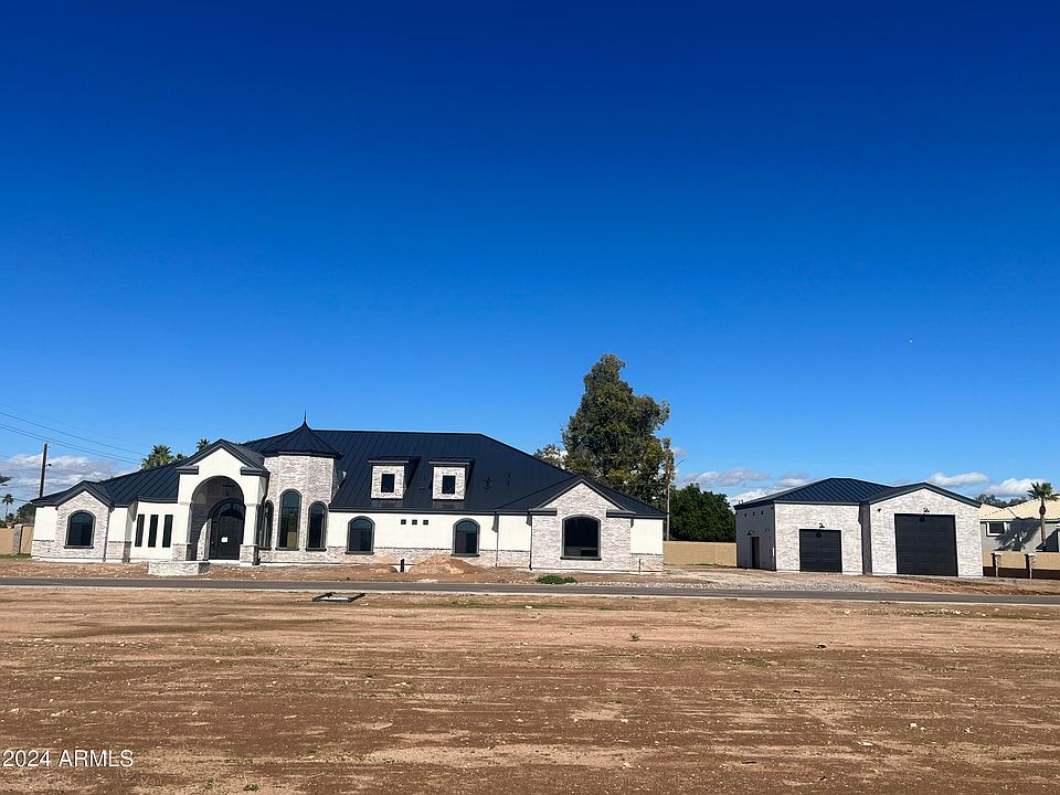 This extraordinary modern farmhouse masterpiece is currently under construction and promises to be a truly exceptional home. The exterior boasts exquisite curb appeal with a professionally manicured landscape, an RV gate, and an impressive 8-car garage. As you enter through the courtyard, you'll be greeted by a grand glass and iron door that sets the tone for the sheer beauty and breathtaking detail found throughout the home. The interior features coffered ceiling, adding an elegant touch to the already stunning design. With 4 spacious bedrooms, each equipped with a walk-in closet, as well as office and guest quarters, there is plenty of room for everyone. The gourmet kitchen is a true highlight, featuring top-of-the-line Monogram appliances and a giant island with quartz countertops. But the luxury doesn't stop there. This property also includes a heated and cooled 12-car detached garage, measuring an impressive 60 feet deep. Complete with a bathroom, blackwater RV dump, 220 outlet, and 50 amp in the main and RV garages for your electric vehicle, this space is perfect for running a business or storing your prized collection of cars. Additionally, the property has been pre-wired for a security system, ensuring peace of mind for you and your loved ones. This exceptional estate is expected to be completed by February 2024, and it is sure to be a true showstopper once finished.