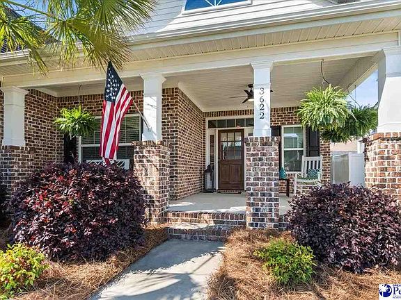 Welcome home to this over the top charming, 4 bedroom, 3 full bathroom home! This home is located in the desirable neighborhood of Highgate and is sure to be love at first sight! The curb appeal immediately grabs your attention with lush landscaping and a mature palm tree and draws you in with the spacious covered front porch and beautiful front door! Highlights of this home include soaring cathedral ceilings, luxury vinyl floors throughout, plantation shutters, gas fireplace, enhanced decorative molding throughout, and built-in shelving and cabinets in the living room, and smart technology for the garage door. The kitchen is highlighted with granite counters, tile backsplash, soft close cabinets, under cabinet lighting, counter seating, stainless steel appliances (including gas cooktop), and a large eat-in area! The first floor includes the foyer, living room, kitchen, laundry room, enclosed sun room, the primary bedroom and two additional bedrooms and two full bathrooms. The second floor includes a bedroom (or bonus room) with a full bathroom and a separate mini split for heating and cooling. The primary bedroom features a decorative trey ceiling, walk-in closet, and an en suite bathroom with a soaking tub, tile walk-in shower, and a double vanity with granite counter. If you're looking for your new happy place, look no further! The enclosed sunroom is an additional 225 square feet and is the perfect place for relaxing and entertaining alike. The exterior of this home features a fully fenced in back yard, a storage shed and rain gutters. This home is zoned for west Florence schools. Don't delay in seeing first hand all this truly spectacular home has to offer!