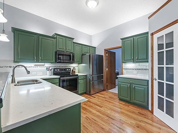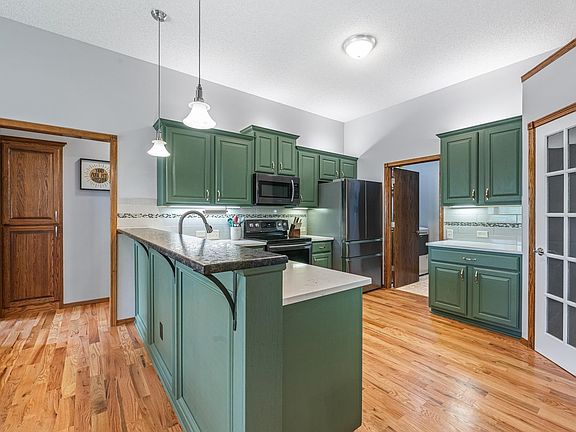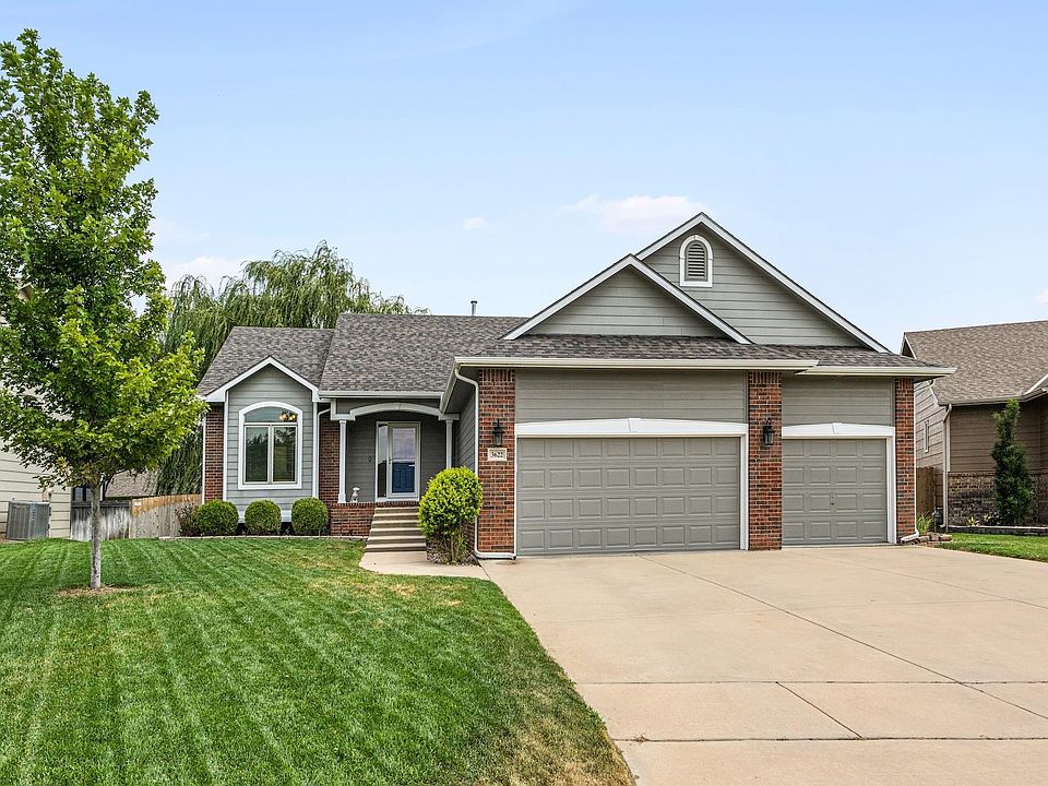 Welcome to this exquisite ranch-style home nestled in the highly sought-after Ridge Port Addition, renowned for its numerous amenities, charm and community spirit. Boasting an ideal layout and impeccable finishes, this residence is a haven for modern family living. Upon entry, the living space greets you with newer Red Oak hardwood floors and a captivating 2-way fireplace shared between the living room and dining room, creating an inviting ambiance throughout. The dining room offers seamless access to the backyard deck, perfect for alfresco dining and entertaining. The kitchen is a chef's delight, featuring quartz and granite countertops, painted cabinets, a stylish tile backsplash, a walk-in pantry, and a large eating bar illuminated by pendant lighting. Convenience meets functionality with a dedicated main floor laundry area. Designed for privacy, the split bedroom plan situates the private primary suite apart from the secondary bedrooms. The primary suite boasts a vaulted ceiling, double sinks, a jetted corner tub, a standalone shower, and a spacious walk-in closet, ensuring a tranquil retreat. Two additional bedrooms on the main floor share a hall bath with tile flooring and a tub/shower combo. The finished view-out basement expands the living space with a generously sized carpeted family room, complete with a wet bar featuring a large eating bar, ideal for casual gatherings. There is ample space for a bar fridge and microwave. The basement also hosts a large 4th bedroom with a walk-in closet, a substantial 5th bedroom, and a third full bath. Outside, the backyard is designed for relaxation and enjoyment, featuring a larger covered deck, a newly installed wood privacy fence, and a sprinkler system for effortless lawn maintenance. The three-car garage is fully sheet-rocked and painted, providing ample space for vehicles and storage. Roof, Air Conditioner, Hardwood floors, Main Floor Bedroom carpets and Interior paint all new in 2023. Located within the top-rated Maize School district (Maize South Campus), this home offers not only a luxurious lifestyle but also the convenience of nearby amenities and excellent educational opportunities. Close to shopping, restaurants, churches and schools. Easy access to Highway K-96 for reaching all Wichita area attractions, employers and shopping. Don't miss your chance to own this exceptional property in Ridge Port Addition—schedule your private showing today and make this dream home yours!