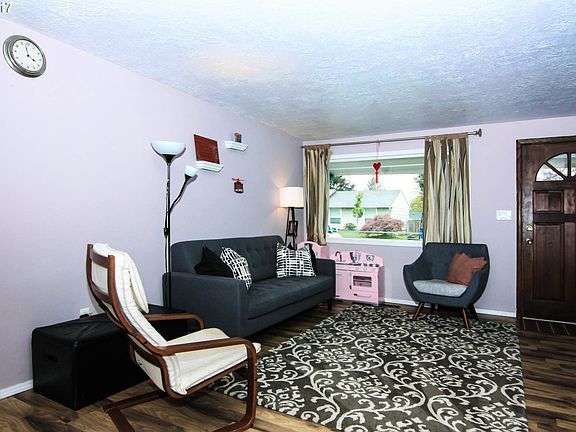 Cozy updated home with huge two car garage and sizable back yard on quiet street. Great starter home or for those looking to downsize! Spacious kitchen that opens into living area.