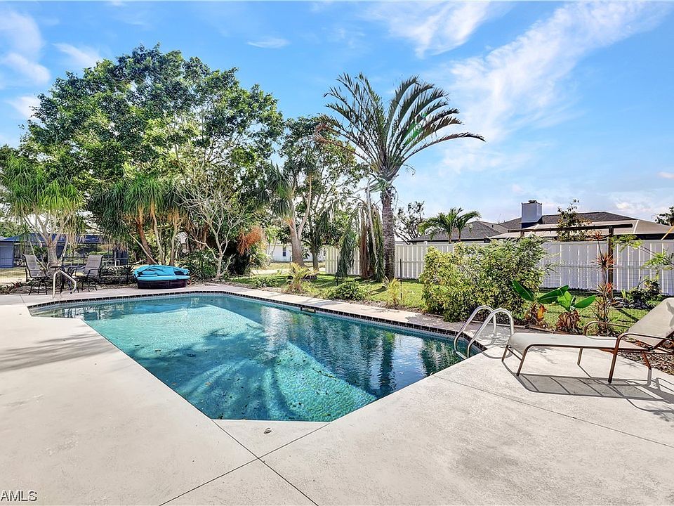 Immaculate POOL home boasting 3 bedrooms, 2 bathrooms and a 2 car garage. This western exposure corner lot property includes a brand NEW ROOF! Kitchen appointed with Stainless Steel appliances, Pantry, and abundance of cabinets and counter space. The home offers a huge living area, tile flooring in all living areas, vaulted ceilings, spacious master bedroom and guest rooms with updated bathrooms, plenty of outdoor living space and lanai area, lush landscaping, spacious backyard, and so much more!!ALL Assessments have been paid. This home is conveniently located near downtown Cape Coral's shopping, dining, near medical professional, hospitals and the nearby beaches of Ft Myers, Sanibel and Captiva. Quick and easy transit to SW Florida airport. Schedule your showing today!