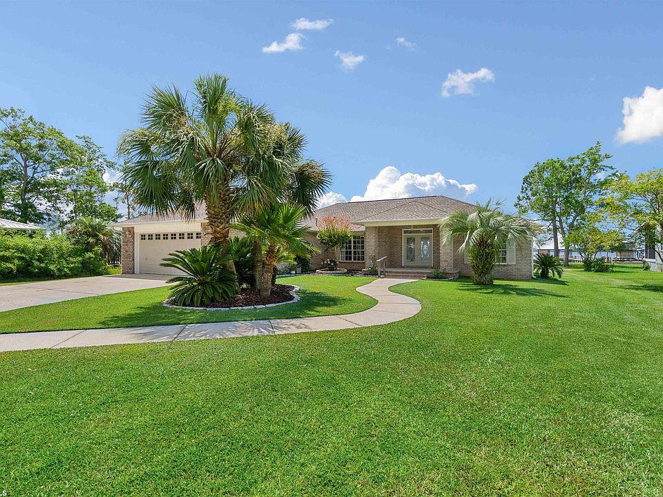 119 FEET OF SANDY BEACH DIRECT WATERFRONT ON PERDIDO BAY WITH PIER! This wonderful house is a beach lover, boating lovers, and yes car collector's dream! Starting with the sandy beach. Enjoy sunning and swimming on your own 119 ft private sandy beach. There is a pier for those sunset evenings enjoying the cool breezes and amazing scenery. Occasionally you can sit and watch the Blue Angels practicing across the bay. Its spectacular. For boating, you are minutes to Orange Beach and all the popular boating spots. Approximately 25-minute boat ride to the Pass at Alabama point and open water Gulf of Mexico for your days of offshore fishing. For your cars, there are two garages. One is 31 x 23 fully insulated for climate control! And the other is 21 x 31. There is also a 26x15 shop, and a 9x12 shed. Outdoor shower. Lillian is a hidden treasure. Still relatively undeveloped, peaceful, and friendly. Enjoy your golf cart rides with water views. As you start to enter the house you can't help but to notice the wonderful landscaping as you approach the front porch. Walking in the fresh open floor plan you immediately see the Bay and beach through the back windows and sunroom. Tile floors throughout, split floorplan and SINGLE STORY! Yes, no stairs. The kitchen/breakfast area is open airy and has an amazing view of the water. The roof is a year old, and the AC is new. This is a very low maintenance dream! There are so many extras you just must see it for yourself.