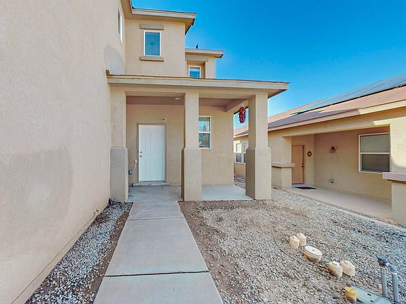 What an incredible opportunity to own a beautifully maintained home in the popular High Range neighborhood of Rio Rancho! NO HOA and NO PID! The home is close to popular school districts, parks and local shopping. Boasting a large living and dining area off the kitchen, the first floor offers plenty of space for entertaining, play, work, and relaxing. Upgrades include 4 inch floorboards, upgraded tile flooring throughout the entire first floor, granite waterfall style countertops and brand new paint throughout the entire home. The kitchen has plenty of countertop space and cabinets. The bathrooms on both floors have upgraded tile flooring and tasteful upgrades. The covered backyard patio will keep you cool all summer and the primary bedroom offers a garden tub and separate shower!