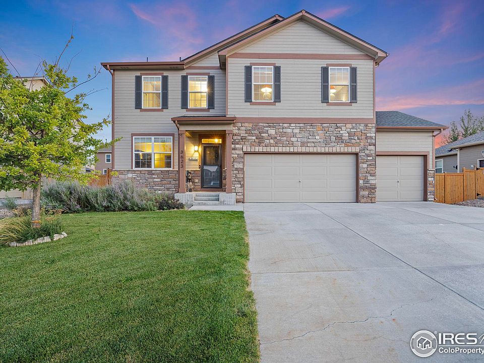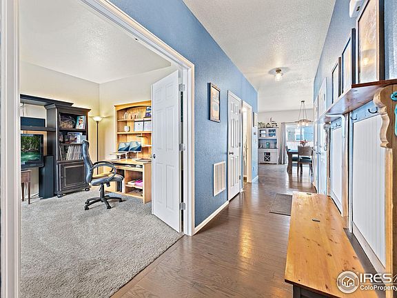 A must see, energy efficient, spacious 2 story home with main floor office, large living room that opens to eat-in kitchen with large island and plenty of storage. Enjoy the wood floors throughout the kitchen, dining and living areas! Outside is a fenced yard, newer deck and party lights! Upstairs is an open loft and 4 spacious bedrooms with large hall bath. Enjoy the master bedroom with great walk-in closet, shower and double vanity. The unfinished basement provides plenty of extra space for storage or future expansion. Solar panels will be paid at closing - no lease required. Conveniently located near schools, parks and trails.