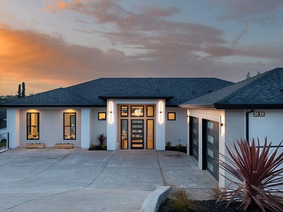 This newly constructed home of more than 3600 square feet sits adjacent to Fountaingrove open space with long range views. Primarily single level living with kitchen, great room, primary suite, office, laundry and garage on the main level. The exceptional designer appeal with open floor concept includes 12' ceilings, a temperature-controlled wine display showcase, living/dining room with linear gas fireplace and chic lighting fixtures. The great room has stacking glass doors that open to the view terrace. The kitchen, open to the great room, has all the amenities any chef would desire, including a quartz center island, Dacor appliance package, and a walk-in pantry. A luxurious primary suite on the main level has direct access to the view terrace and en-suite bath. There is an additional bedroom on the main level and a full bath. The lower level features a game/family room with a geometric wood accent feature wall and two additional bedrooms (both en-suite), all with direct access to the covered terrace. The outdoor space is complete with a built-in firepit and seating, lawn area, patio and room for a pool. The distinctive custom home is in the heart of wine country with close proximity to wineries, dining and Sonoma County Airport.