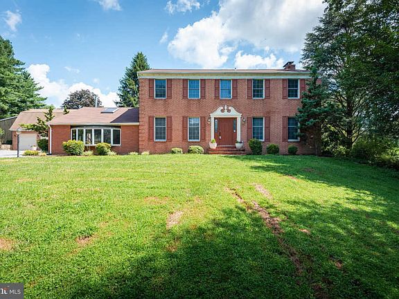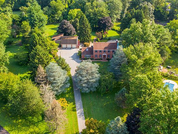 All brick custom colonial is set on a picturesque lot with sprawling backyard! Rich mouldings, custom wood & trim work include coffered ceilings in chef's kitchen with maple cabinets, sleek granite counters, recessed lighting, and breakfast area. Family room with floor to ceiling maple paneling + cozy wood fireplace! Terracotta sunroom with beamed ceilings & built-in cabinets! Expansive screened porch opens to grilling deck and backyard with glimmering refinished pool, covered patio area, and multi-tier stone garden! Large bedrooms include owner's suite with attached bath and walk-in closet. Remodeled lower level features rec room and bar/entertaining spaces with wood stove, built-ins, and walk out access to patio. 6 bay garage with loft! 2018 roof & fresh paint, welcome home!