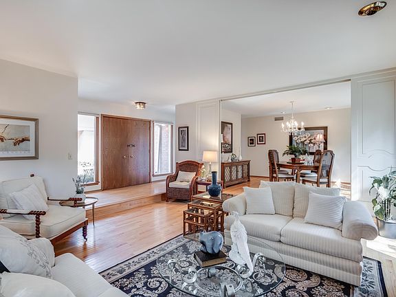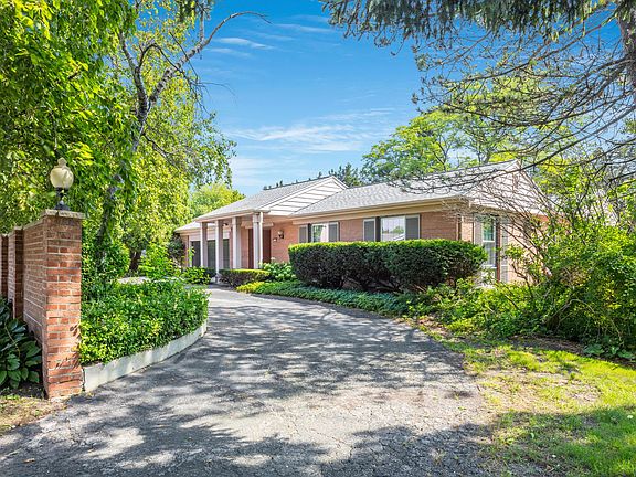 Stately and spacious 4 bedroom 2.5 bath brick ranch home located in the Village of North Bay on over 1/4 acre! Drive up to the private courtyard and enter the formal living room with decorative wood doors separating the living space from the formal dining room...an entertainer's dream! Open concept family room and kitchen combo with sliding glass doors leading to a large concrete patio and the beautifully landscaped, fully fenced private yard with views of a peaceful ravine. Family room features a Natural Fireplace. Master bedroom with private en-suite. 4th bedroom would make a perfect home office - built -ins and it's own private deck! Much of home has beautiful oak hardwood floors! All of this plus partially finished lower level and 2.5 car attached garage. Roof new 2018.