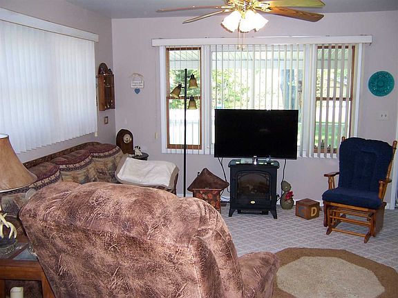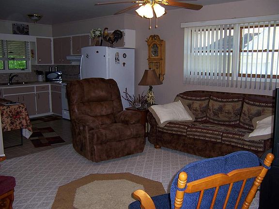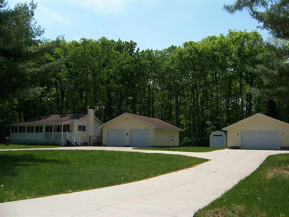 Very nice ranch home, covered front and rear porches, with full basement. Two bdrms. plus an office/den, which could function as a third bdrm. Recent additions include newer appliances, floor coverings, paint, NGA furnace, Central Air, Generac generator, 2 large garages (28' X 32' each). The basement offers room for future expansion and is clean and dry. Laundry area on lower level. A wood stove has been removed, but the masonry chimney remains for future use by new owners. Newest garage (man cave) includes cable TV, wood stove, workbench, and has 14" blown in insulation above. All drives are concrete and a newer garden shed is included. A beautifully maintained property! LAND CONTRACT TERMS WITH LARGE DOWN !!