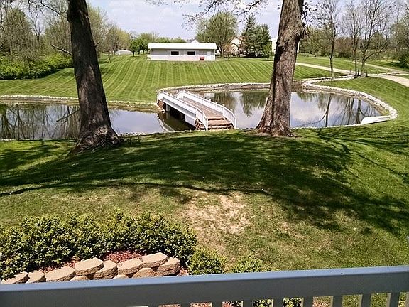 Beautiful country home on 5.5 acres of park like property situated only 1 mile from the Center Grove High School. Only 2 miles from local restaurants and shopping. Small woods and wonderful stocked pond with footbridge. Large deck that overlooks pond and property. Long concrete driveway and with nicely manicured trees and lawn. large concrete parking area between home and detached garage. Home is spacious with a large sun room that overlooks the pond. Very nice finished basement with EverDry basement system installed. Detached garage is large with plenty of room for 4 cars. Attached garage is nice with room for 2 cars plus storage. Both garage floors are concrete coated with polyurethane that makes them easy to clean and look great. Large pole barn with concrete floor is great for storage of tractors, cars, atv's, boats etc. Floor in pole barn has drains as well. It is wired with many outlets, lighting, as well as nice large exterior lights and a security light. Great place to live to have a spacious secluded country feel while living close town!