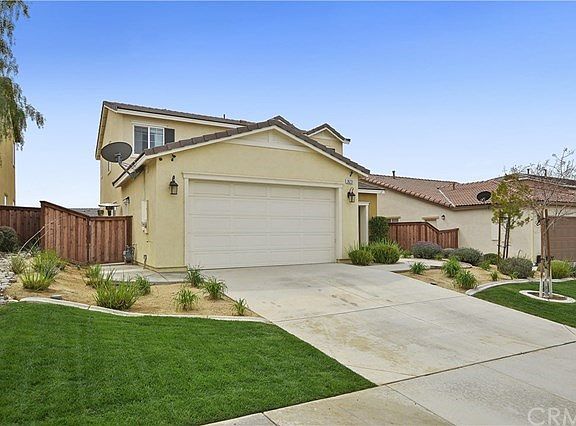Excellent condition, Beautiful move-in-ready 4 Bedroom 3 bath home located in the gated community of Tournament Hills! This home features an open floor plan with wood & tile flooring, granite countertops, walk-in pantry, ample cabinets, Recessed Lighting, wired & ready to mount a TV over the Fireplace, ceiling speakers with Surround Sound! Wonderful views from the upstairs bedrooms, the master suite has a large walk-in closet & a separate tub & shower. Main floor bedroom and bathroom, perfect for guest, or multi-generational living. The Back Yard is ready for Outdoor living with a gas Barbecue hook up, a gas Fire Pit, and stamped concrete patios! The community features Lakes, walking trails, parks with play areas, and lovely surrounding views. Near golf courses! Gateway to Palm Springs!