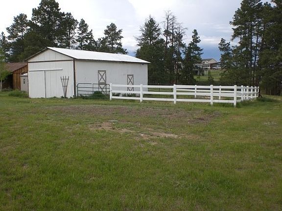 2 Acres, Finished Walkout Basement, South Facing, Horse Property, Shop/Barn, Pasture, Backs to Bridle Path! Peaceful country living. Vaulted entry, living and dining rooms. Open kitchen with newer appliances, slate flooring, breakfast area. Family room with gas fireplace. Vaulted master with 5-piece bathroom, walk-in closet. Walkout basement has a rec room/studio, sitting room, bedroom and 3/4 bathroom. Endless entertainment opportunities combined with coveted privacy and country living. You will love the park-like setting of the front and back yards, new paver entry and back patio. Enjoy the towering ponderosa pines, wildflowers, country roads for walking or riding your horse. Only 15 miles to Parker, 18 miles to Castle Rock, 28 miles to DTC.
