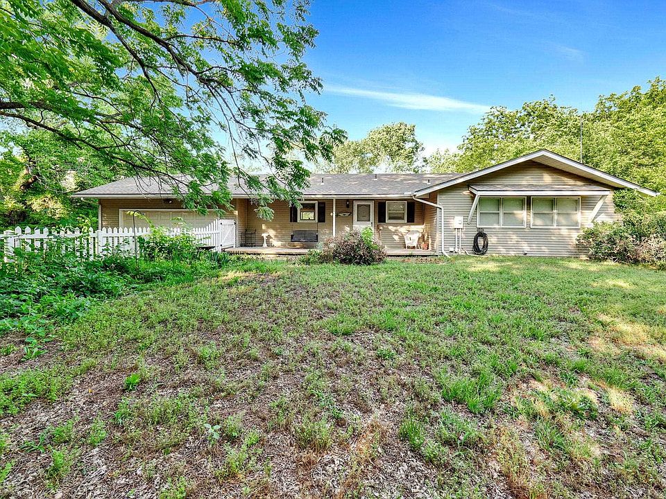 Location, location, location! Amazing one-of-a-kind property nestled in 6.7 acres of trees. There is a 3 acre pond that is currently dry due to our drought. this well-maintained ranch home has a great floor plan. Two bedroom, three bath, full unfinished, true walkout basement, two car attached garage, and a detached shop. Walkout basement has a finished bathroom, and plenty of room for two more bedrooms, and plenty of room for two more bedrooms and a family room to be finished. absolutely serene and private with a very long private drive. House cannot be seen from road. The home is on a well with water softener and it’s all electric. All this little jewel needs is a little updating. This incredible property will not last long, call listing agent for private showings. Property is being sold as is no repairs to be made by seller if any. This house has been very well-maintained and is a one owner home. So many opportunities to clear areas for out buildings, mother in law quarters, etc. This property is not in a flood zone.