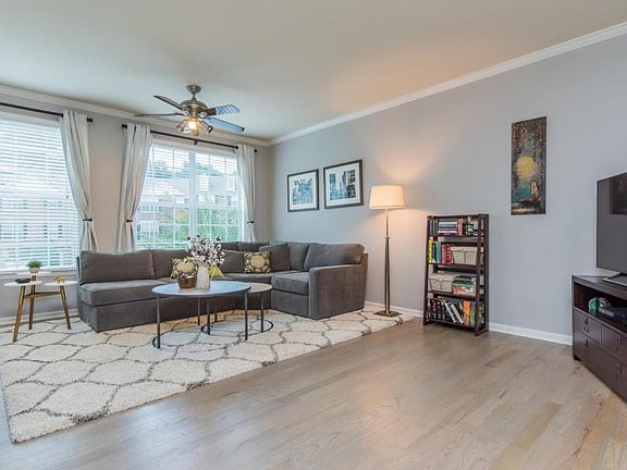Stunning 3 level townhome +2 car garage ITP! Located near Costco, Suntrust Park, 75, shops, dining, night life, +nature! Features: beautiful red oak hardwoods, 9' ceilings, gorgeous kitchen, gas fireplace, updates! Upper level includes spacious master bdrm w/recently upgraded master bath w/walk-in shower, huge walk-in closet. Two more bdrms, full bath & laundry room round out top level.View of Chattahoochee Nat'l Forest Downstairs there is a rec room and large, tiled storage rom stubbed for a bath. This home has the largest deck in the neighborhood! Swim + Fitness!