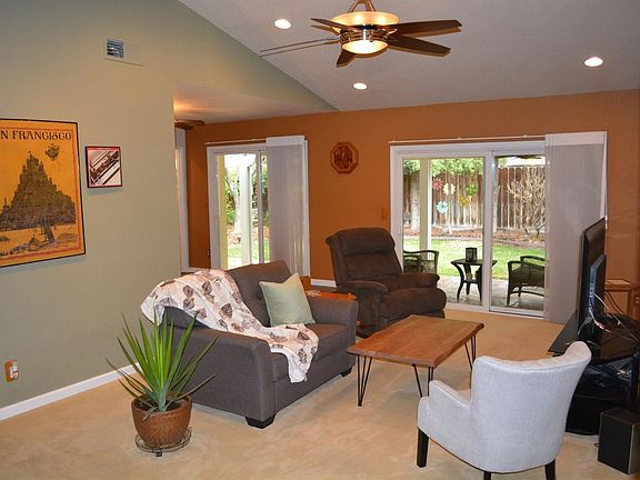 This beautifully maintained ranch style home awaits you,3624 Doheny Way. Nestled under a majestic Zelcova tree in North Modesto just minutes from Hwy 99, and shopping. This lovely home boasts three bedrooms and two full baths, separate family and living rooms with 1,723 square feet of living space. The tiled entry, vaulted ceilings and wet bar in the living room provide for added entertaining ambiance. Spacious remodeled kitchen featuring cherry wood cabinets. Family room, kitchen, dinning area and hallway all have Pergo Laminate flooring. Main bedroom with en suite bathroom, dual sinks and enclosed jetted tub. Main bedroom has a glass slider leading to an outdoor 18X20 covered deck. Bedrooms have California closets. Indoor laundry room w/ cabinets. Beautifully landscaped yards with numerous varieties of plants, flowers and fruit trees including several calming fountains, along with lighting which adds to the serenity of the yards. 2 car garage w/ storage closets and a work bench.