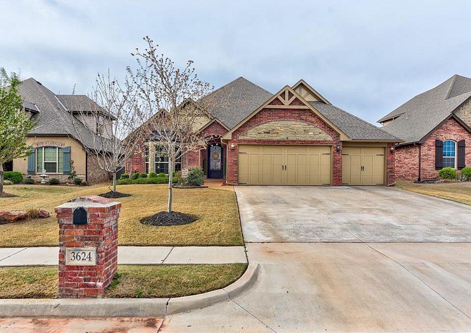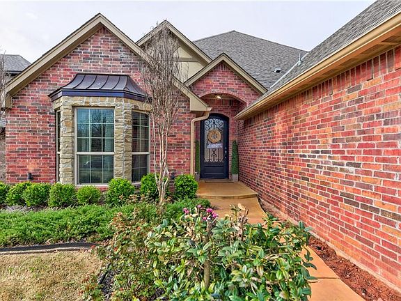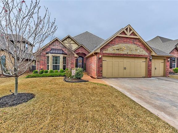 Home has amazing view of the golf course with an upstairs balcony. Gated Golf Course Neighborhood in Edmond Public Schools with cabana and aquatic center & pool, kids' playground. 3 car garage with in ground storm shelter, Post Tension Monolithic Slab, custom cabinets, SS appliances, granite throughout, beautiful woodwork, whirlpool tub, sprinkler system. The custom designed ceilings and lighting throughout the home are beautiful. The wood work, hard wood floors, and gas fireplace in the living room at beautiful! In the master bedroom you feel like your going to sleep under the stars. Master bedroom connects to beautiful bathroom and walk in closet. Upstairs has a spare living space with a bonus room that has surround sound wiring already ran throughout the room. Upstairs also has a bedroom with an amazing view of the back yard and golf course that overlooks the main pond. From the upstairs bonus living room you can head to the balcony and enjoy morning sunrises. Hurry!!