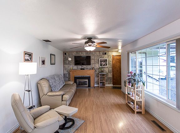 Accepted Offer with Contingencies. Magnificent home located and great end of Geary street with very little traffic and huge lots!! Beautiful hardwood floors w/oak & 5 hardwoods types inlay around perimeter. Vaulted ceilings, gas FP, new gas furnace & gas water heater, great kitchen w/oak cabinets & all stainless appl. included. Home is on well, no more water bills! .44 acre is one of the largest lots around w/22x20 shop w/covered lean for parking on both sides. Fire pit, garden area, completely fenced backyard w/RV area & sewer dump.