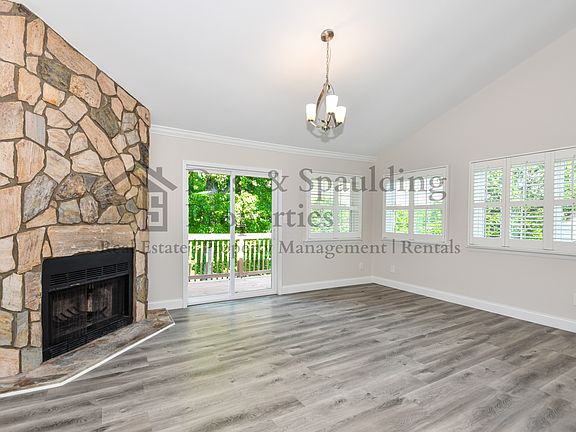 Cozy fireplaceVaulted ceilingsLvp flooringGranite countertopsStainless steel appliances