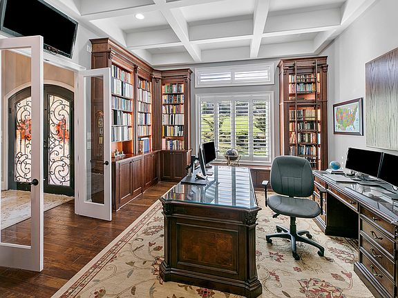This beautiful custom lake front home was built in 2018 with careful attention to every detail. The main level has soaring ceilings, a private office, formal dining room, open concept great room with stacked stone fireplace. The kitchen has beautiful white cabinets accented with a wood island, top of the line stainless steel appliances including a 6 burner JennAir stove top with griddle, double convection ovens with warming drawer, and quartz and granite counter tops. There are two suites on the main level- take your pick! The main owner's suite has a private balcony with views of the water, trey ceiling, and a gorgeous bathroom! The ensuite bathroom has a separate soaking tub, separate vanities, and a massive, beautifully tiled walk-in shower with an electronic wall mounted keypad to set