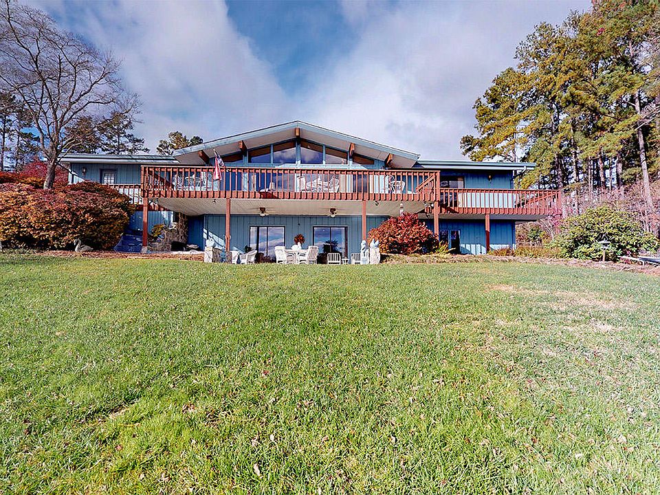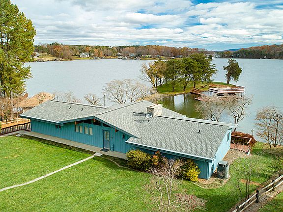 Magnificent custom built contemporary ranch with million dollar views, walls of windows w/ oversized doors in great room is one floor living at it's finest. Features large great room with masonry stone fireplace, spacious kitchen with custom cabinets and dining area...all with views of the lake. Oversized master suite with sitting area and jacuzzi tub in master bath and large closet. 2 additional bedrooms and bath make this split bedroom design ideal and all 3 bedrooms have door opening to the deck on lakeside. Lower level offers recreation room with another masory fireplace (has wood stove insert), wet-bar w/refrigerator and ice maker, lower level patio that's dried in and piped for a hot tub, Double car garage with built in shelfing on 3 sides,irrigation system, invisible fence,