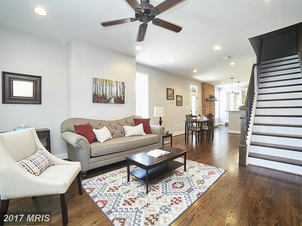 Close to Druid Park trails and Woodberry kitchen. 2 car PARKING and fenced rear yard. End of group with Southern exposure. Open floor plan. Hardwoods. Finished basement with separate bedroom. Gas fireplace.High ceilings and ample windows. Highest quality craftsmanship in area and exceptional materials throughout. 3rd floor master suite with great views. $10,000.00 V2V credit towards down payment.